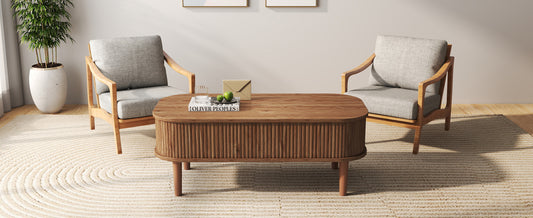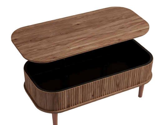 Love this walnut coffee table! The oval coffee table shape fits perfectly in my living room, and the warm wood tone adds elegance. The fluted lift top coffee table design is both beautiful and functional—the smooth lift mechanism creates a handy workspace or dining surface. Great quality, easy assembly, and a real conversation starter! Highly recommend.
